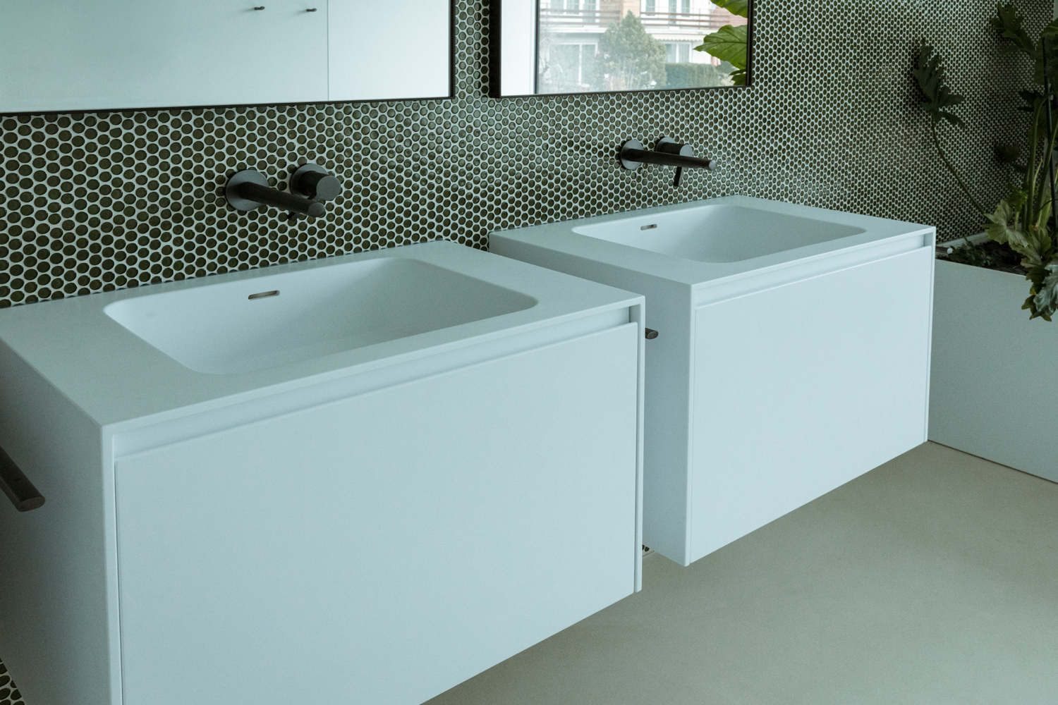 separater Schrankraum integriert. Die Bäder sind modern komplett in weißem,